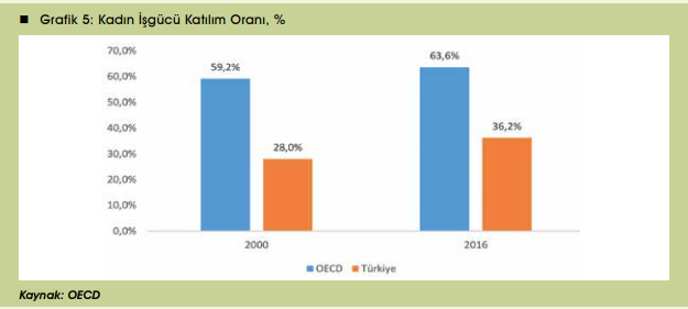 - Türkiye’de kadın işgücü katılım oranında bir artış olmakla birlikte alınması gereken yol uzun