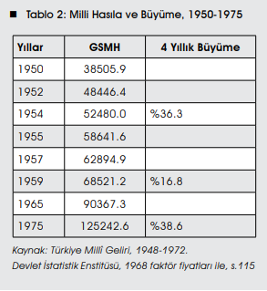 Bu durumda, Adnan Menderes iktidarında, Gayri Safî Millî Hasıla’da nasıl bir büyüme sağlanmıştı ve Programdaki amaçların gerçekleşmesi nasıl olmuştu? Gayri Safî Millî Hasıladaki değişimler, Adnan Menderes iktidarının ekonomik gelişme öykülerinin düzeyini aşağıdaki rakamlar ile göstermektedir.