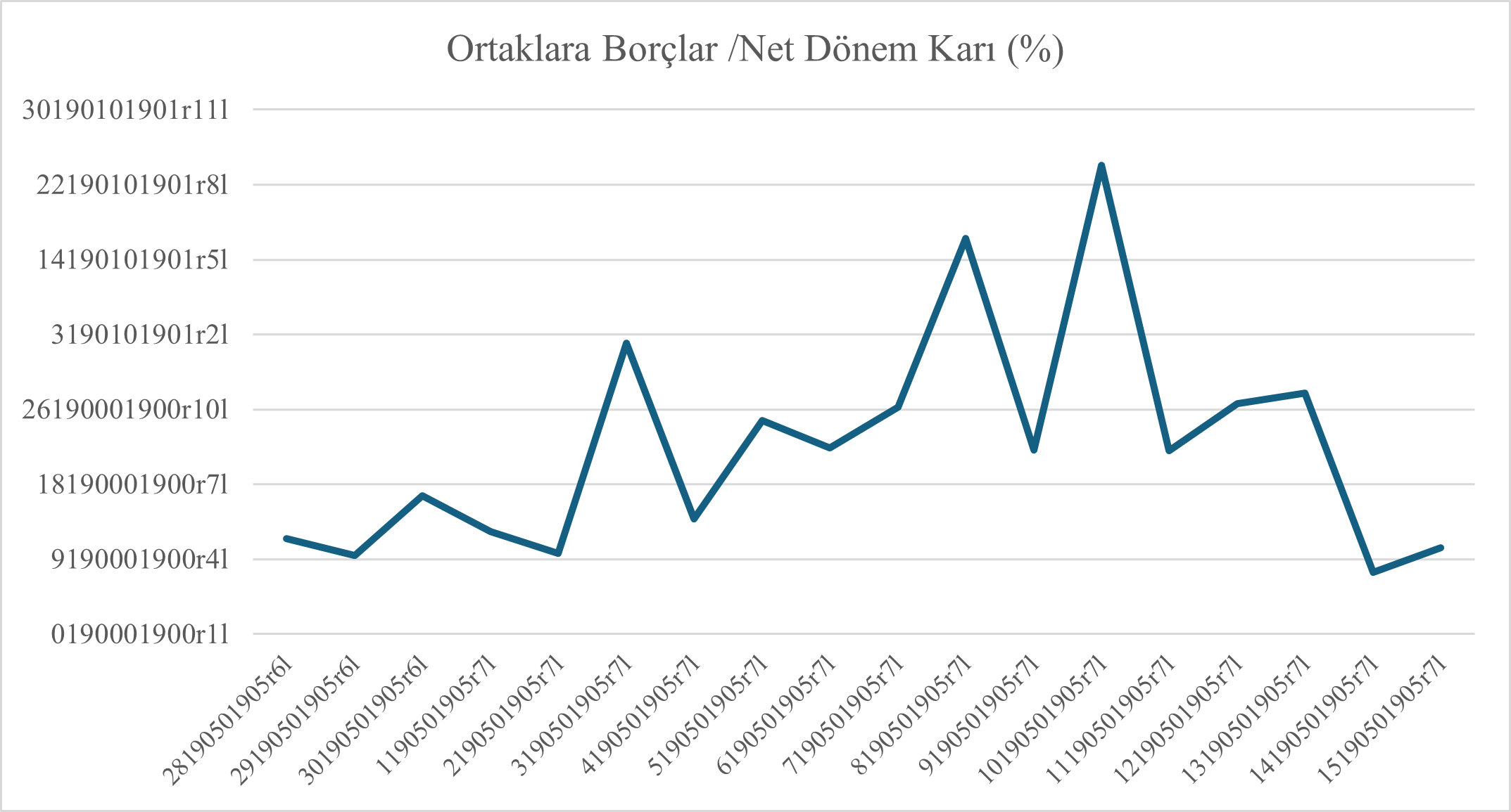 Üçüncü husus da patronların aldıkları kâr payının yarısı vergiden muaf olsa da ortak oldukları şirketlerden çok az kâr payı aldıkları ve bunun yerine şirket kazançlarını ortaklara borçlar kalemi altında kullandıklarıdır. Sektör bilançoları raporlarından şirketlerin kısa ve uzun dönemde ortaklara borçlar kalemlerinden ortaklardan alacaklar kalemlerini düştüğümüzde Şekil 1’deki genel görünüm ortaya çıkmaktadır. 2006-2023 yılları arasında ortalamada ortaklara borçların dönem kârlarının dört beş katı olduğunu görüyoruz. Şirket ortakları şirket gelirlerini şahsi gelirleri olarak kullanırken çok az kâr payı aldıklarından neredeyse hiç gelir vergisi ödemezler.